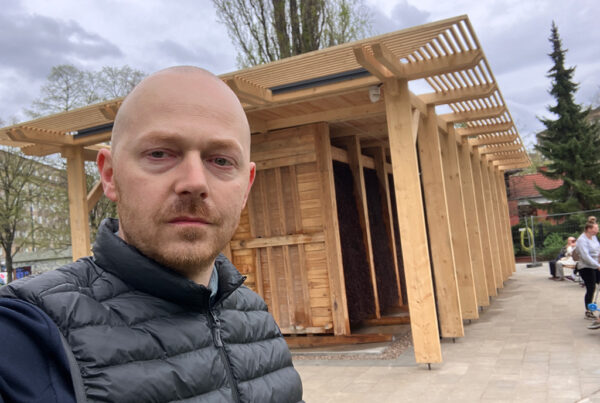 Nowy pojemnik na śmieci przy Szanajcy. Kosz został ustawiony przy ławce